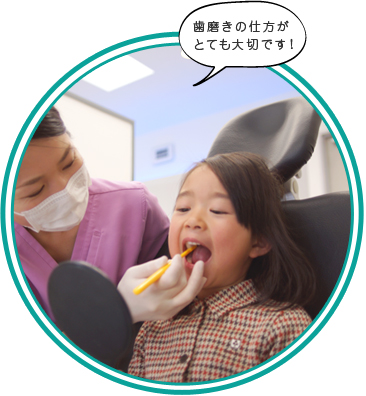 お子様が小さい頃は正しい歯みがきが出来ず、さらに永久歯への生え変わりの時期は歯並びも整っていないため、みがき残しが出やすいです。